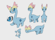 Amura resemble a sauropod dinosaur, perchance Amargasaurus due to it beingness speculated it had frills. Its frills besides resemble auroras and may reference the aurora borealis (referencing its Ice type on how Aurora Borealis oft appears in snowy biomes).